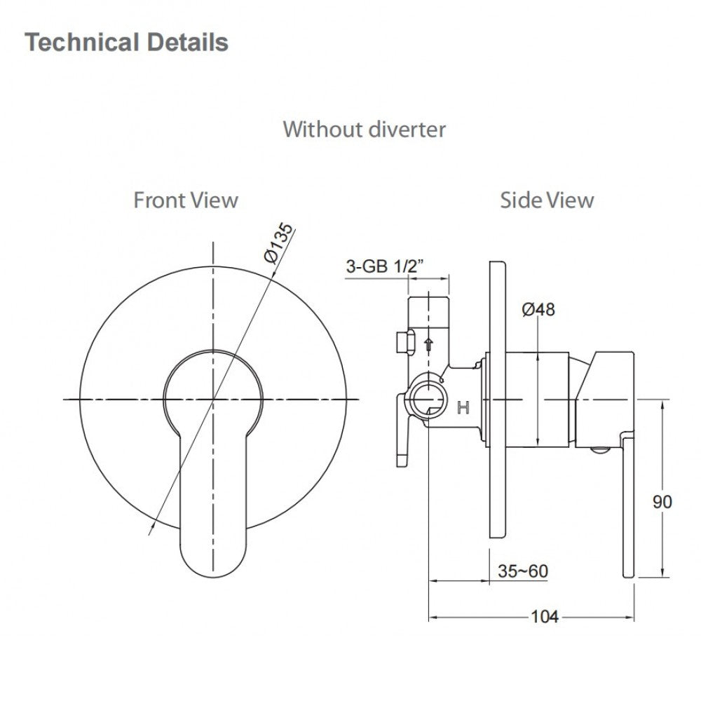 - Includes mixer valve, with 40mm cartridge and trim kit.