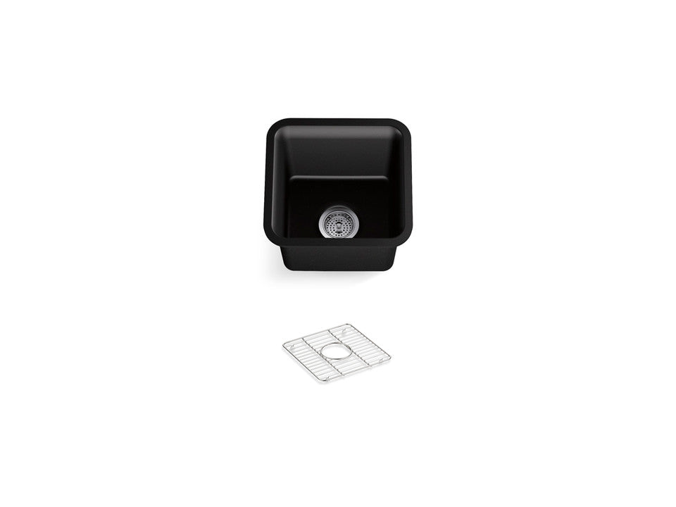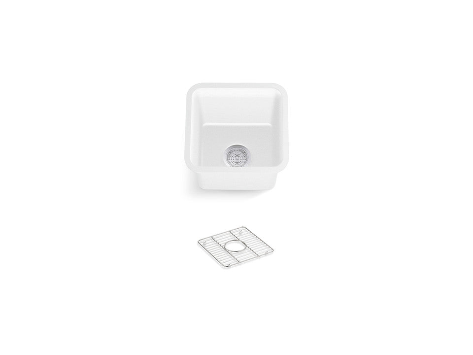 With soft French curves, the KOHLER® Cairn sink offers transitional style to suit contemporary and traditional kitchens alike. The Cairn undermount bar sink is made of KOHLER® Neoroc®, a matte-finish composite material designed for extreme durability and unmatched beauty. Richly colored to complement any countertop, Neoroc resists scratches, stains, and fading and is highly heat- and impact-resistant. This bar sink includes a bottom sink rack to keep the surface looking new.