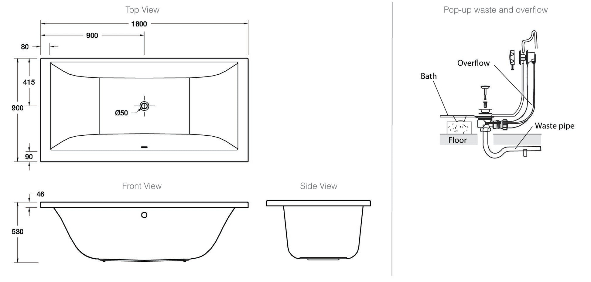 The Evok Rectangular Drop-In 1800mm Bath features a classic design for calm and quiet bath enjoyment.