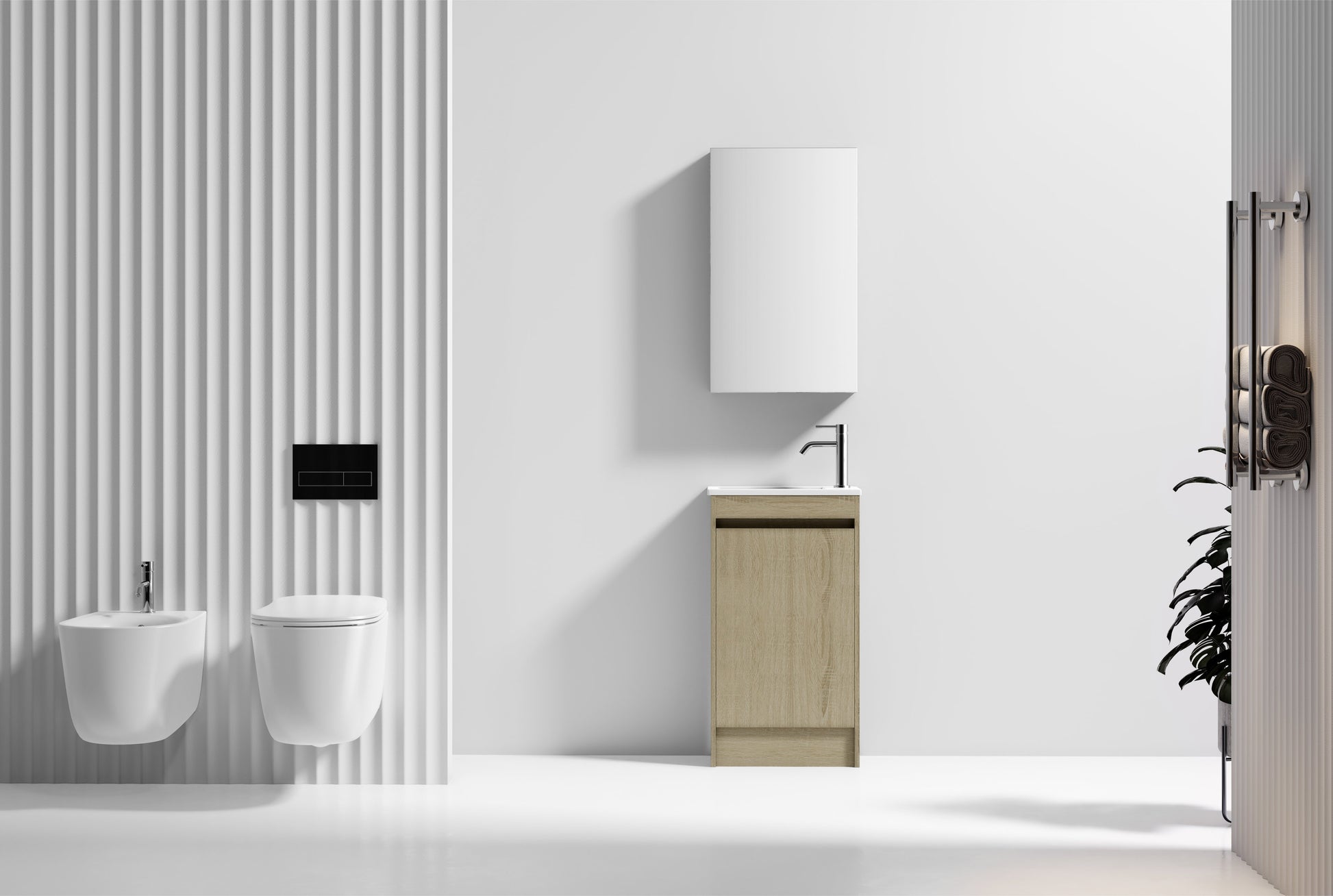The Nora Verona Floor Standing Vanity in North American Oak offers a sleek balance of style, function, and durability for modern bathrooms. Measuring W448 × D250 × H820mm (RBV-6009MCNAO450), its compact design makes it perfect for smaller spaces while still delivering premium storage.