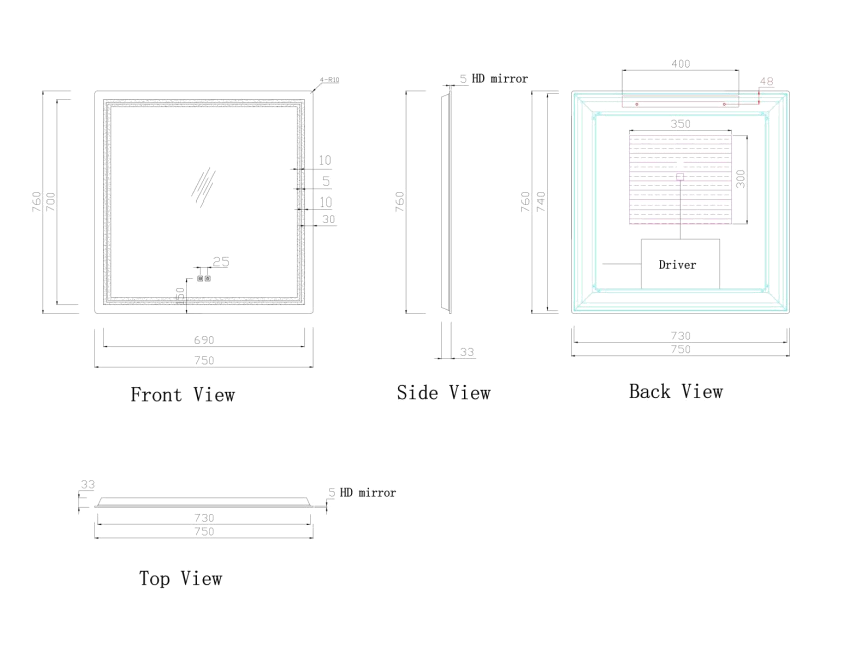 Nora Rectangle LED Mirror with Demister W750*H760*D33mm (JM-7576)